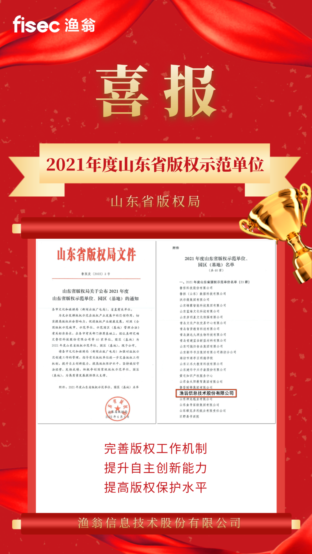 【喜讯】8040威尼斯(中国)信息荣获“2021年度山东省版权示范单位”